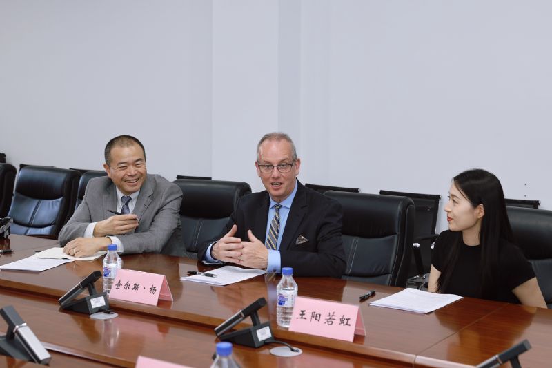 王硕对查尔斯·杨一行的到访表示热烈欢迎,她简要介绍了学院的历史沿革、专业设置和近年来在国际化办学等方面取得的成果。王硕表示,学院始终坚持高水平、有特色、国际化的办学目标,一直以来高度重视国际交流与合作。期待两校以此次会议为契机,创新合作模式,在学生交换、教师进修、互访交流和联合培养等领域开展更深入交流、达成更广泛合作,共同推动中美两国音乐教育事业繁荣发展。