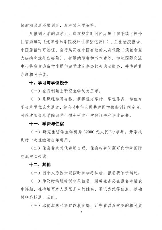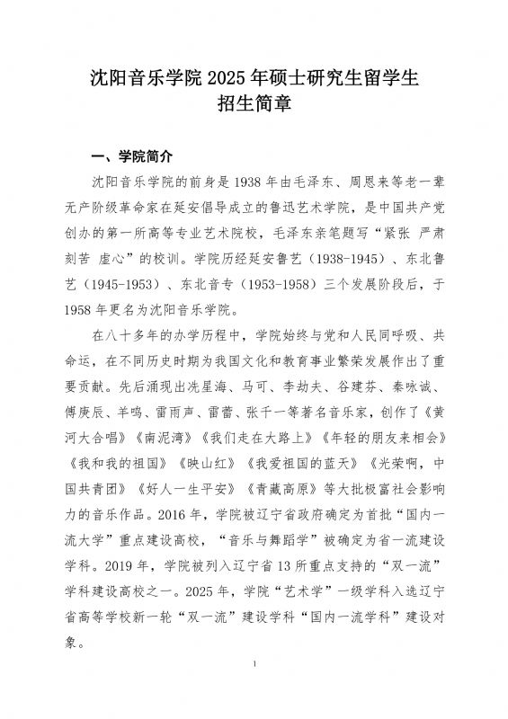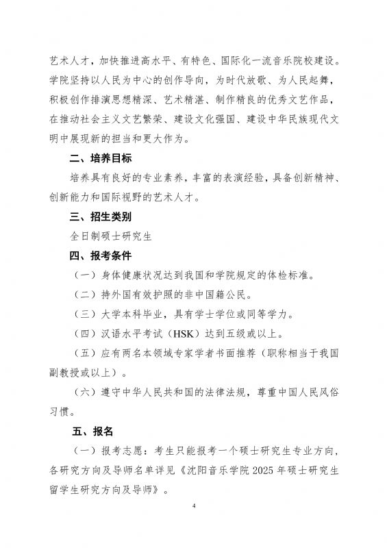 沈阳音乐学院2025年硕士研究生留学生招生简章