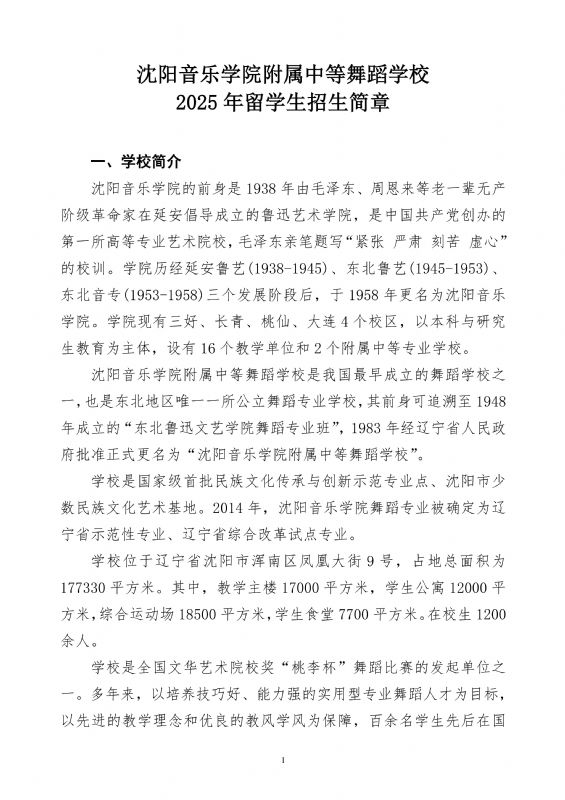 沈阳音乐学院附属中等舞蹈学校2025年留学生专业科目考试内容与要求.pdf