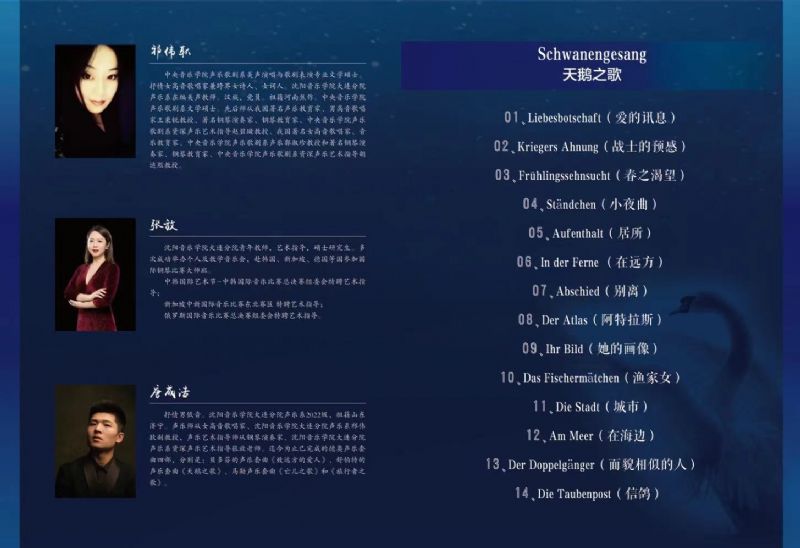 名称:唐成浩——舒伯特声乐套曲《天鹅之歌》演唱音乐会