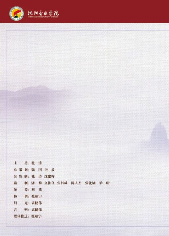 音乐会地点:沈阳音乐学院长青校区第二教学楼15楼演奏厅