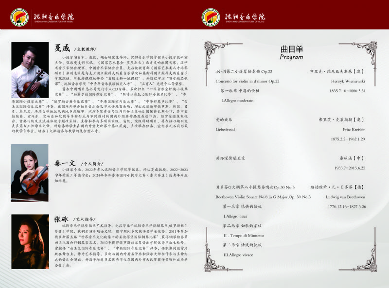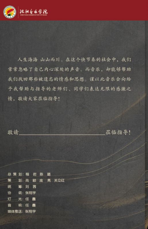音乐会地点:沈阳音乐学院第二教学楼424多功能厅