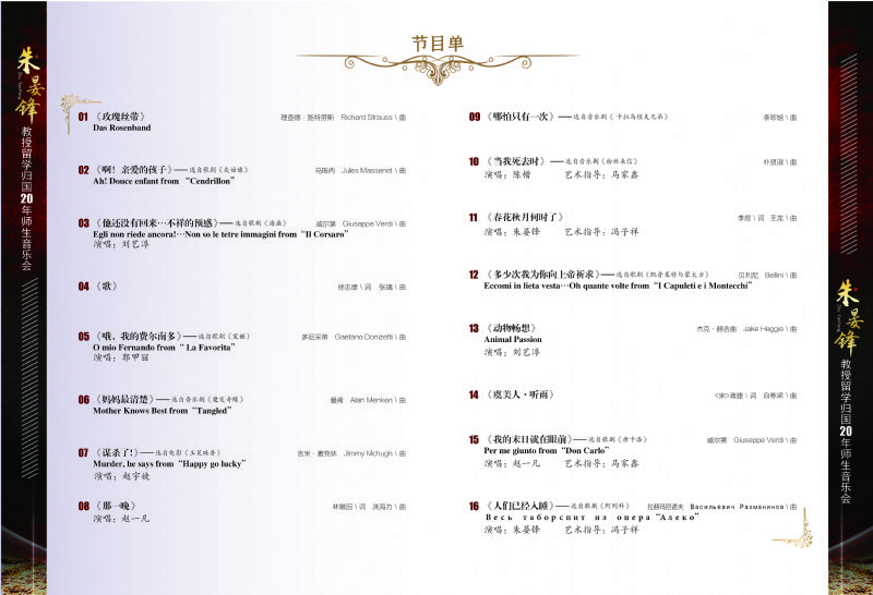 音乐会名称:锋华所至 音你而来——朱晏锋教授留学归国20年师生音乐会