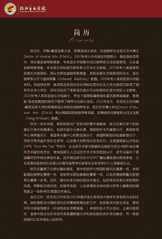 音乐会名称:徐艺伦 旅美钢琴博士独奏音乐会