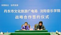 张策与丹东市文化旅游和广播电视局党组书记、局长徐敏签署合作协议。丹东市委宣传部、融媒体中心、教育局负责同志,我院招生就业处、艺术实践中心、对外合作办公室、管弦系负责同志参加座谈。