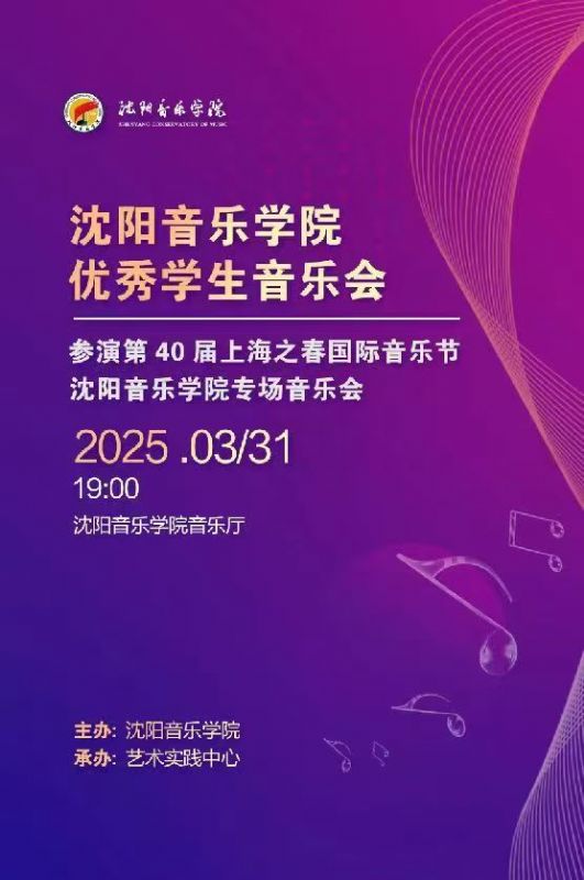 2025年3月31日举办“沈阳音乐学院优秀学生音乐会--参演第40届上海之春国际音乐节沈阳音乐学院专场音乐会”