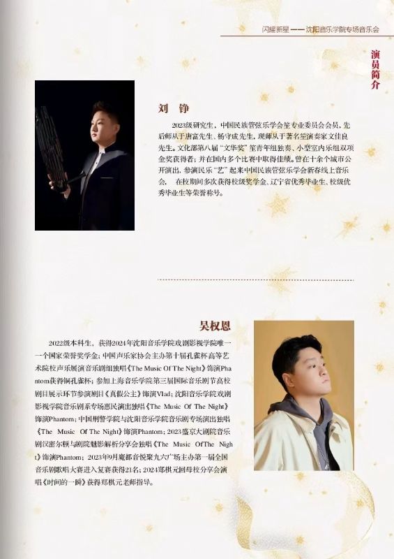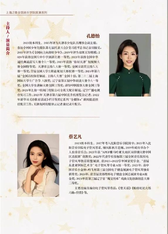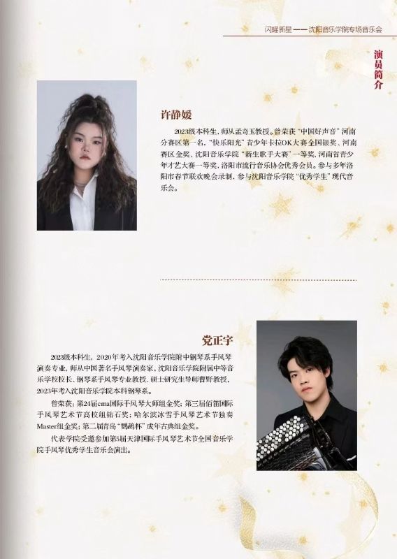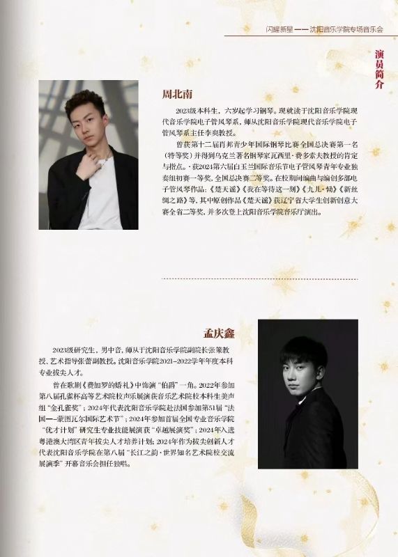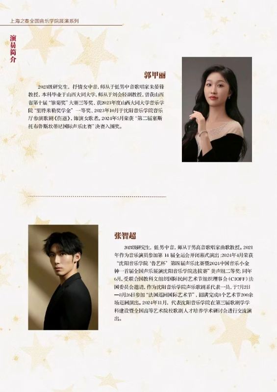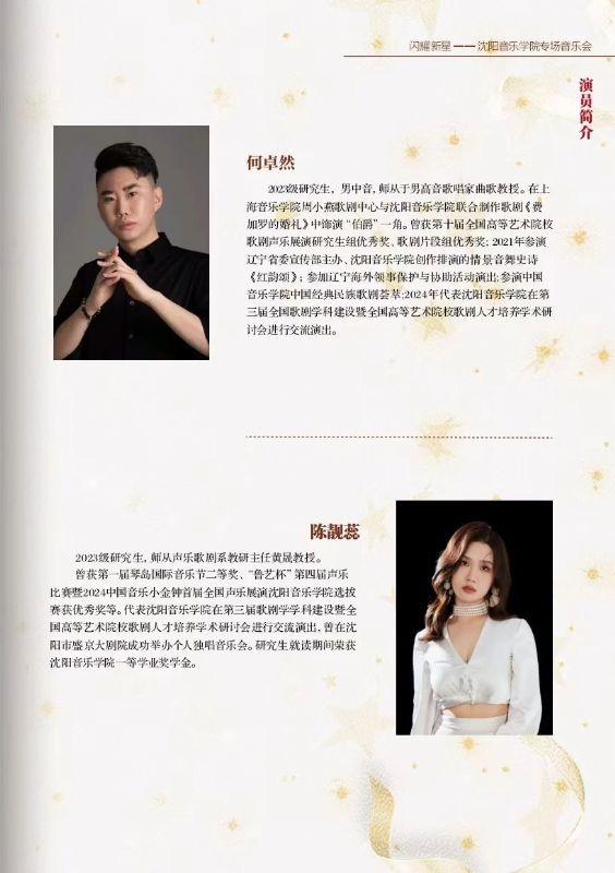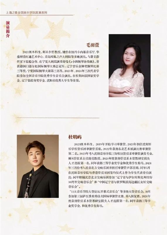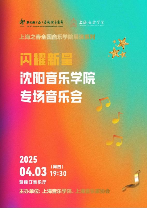 此番沈阳音乐学院亮相上海音乐学院,在“上海之春音乐节”的舞台上举办专场音乐会,不仅是对自身艺术教育成果的一次全面展示,更是对音乐传承与创新的一次积极探索。音乐会以“闪耀新星”为主题,寓意着沈阳音乐学院源源不断地培养出优秀的音乐人才,他们如璀璨星辰般,在音乐的苍穹中绽放光芒。2025年4月3日19:00,我院师生将在上海音乐学院贺绿汀音乐厅为观众带来了一场震撼心灵的视听盛宴,也为沈阳音乐学院2025春季演出季奠定了精彩的开篇基调。