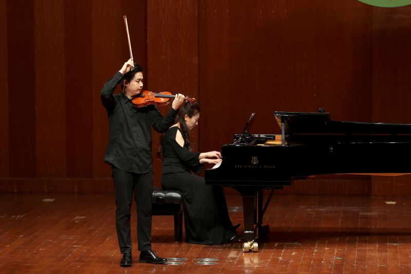 原创作品二胡与竹笛重奏《陌上花开》,二胡的婉转绵长与竹笛的清亮灵动交织,以江南音韵勾勒春色,传统民乐与现代作曲技法碰撞出独特美学;小提琴独奏《引子与回旋随想曲》,绚丽的演奏技巧与钢琴伴奏相得益彰,尽显法兰西浪漫情怀。