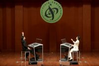 《斯克里亚宾前奏曲集》Op.11选段从行云流水的小快板到炽烈奔放的急板,展现出演奏者对俄罗斯音乐创作风格的深刻理解;一曲陕北民歌《山丹丹开花红艳艳》,演唱者高亢悠扬的歌声唱出了信天游跌宕的声情和黄土地的炽烈情怀,让红色经典焕发“新声”。