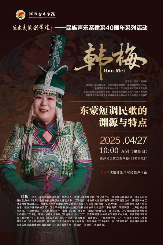 延水長流創辉煌民族声乐系建系40周年活动韩梅——东蒙短调民歌的渊源与特点