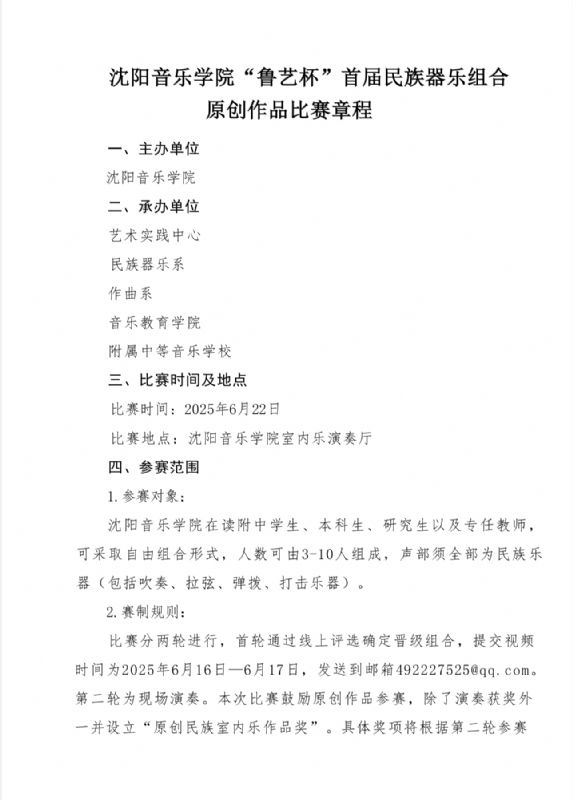 沈阳音乐学院“鲁艺杯”首届民族器乐组合原创作品比赛章程