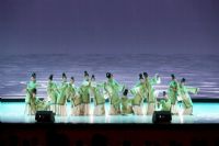 舞蹈《清风徐来》用女子团扇舞的形式表现清代仕女画中的意境美。舞者摇曳生姿的肢体语汇仿若阵阵清风拂过心间,为观者带来清新与感动。