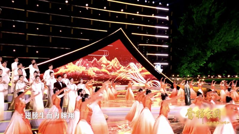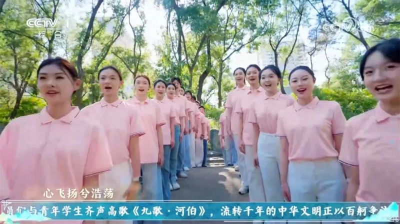 来自声乐歌剧系、民族声乐系、戏剧影视学院的450名学生共同参与《九歌·河伯》朗诵,以声浪的起伏模拟河水奔涌,与辽宁籍奥运冠军、辽篮球星以及东北大学、沈阳大学的学子们共同构建“诗诵古今”的沉浸式场景。