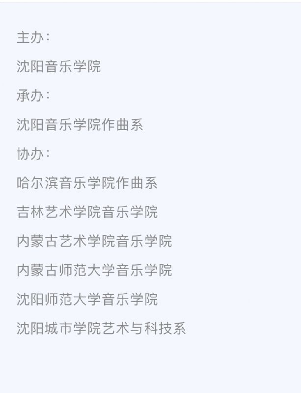 国赛由主办方和七个区预赛承办方共同组成大赛组委会。东北区域赛由沈阳音乐学院主办,沈阳音乐学院作曲系承办,由东北地区多所高校单位联合协办。