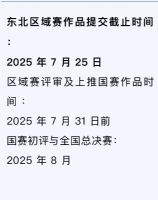 1.区域赛作品提交截止时间:7月25日23点59分59秒