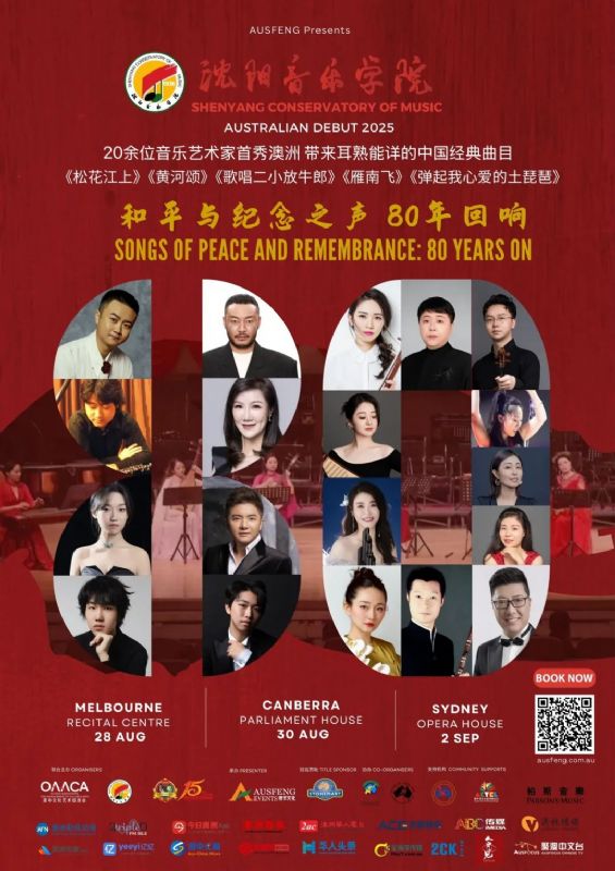8月26日至9月4日,应澳中文化艺术促进会及澳大利亚悉尼大学音乐学院邀请,沈阳音乐学院将派出由25名优秀师生组成的代表团赴澳大利亚举办《和平与纪念之声:80年回响》巡演音乐会。代表团将在悉尼歌剧院音乐厅、堪培拉澳大利亚国会大厦及墨尔本演奏中心举办三场主题音乐会,以艺术语言纪念世界反法西斯战争胜利八十周年,传递中国人民珍爱和平、维护正义的共同心声。