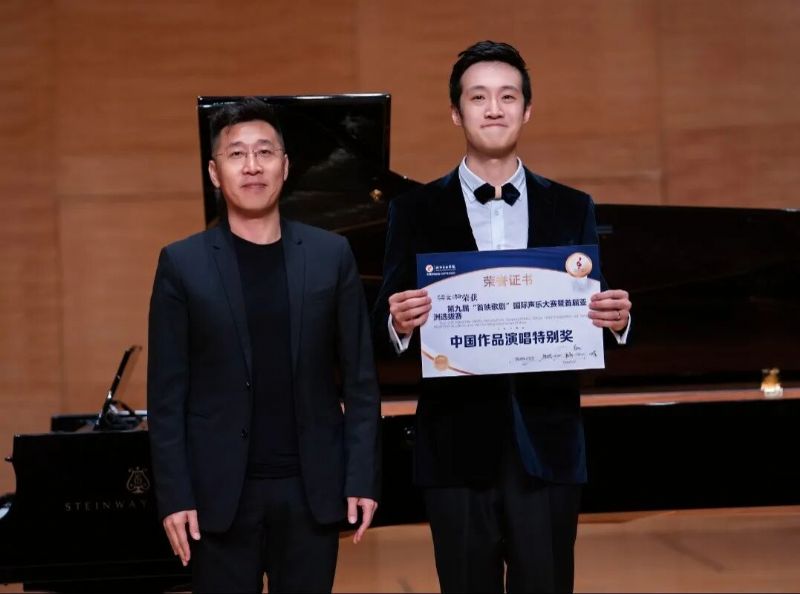 在决赛现场,21名选手在歌剧咏叹调的严谨诠释与艺术歌曲的个性表达间激烈角逐,他们凭借对音乐语言的深刻理解与充满感染力的舞台表现,在赛场上呈现了一场兼具学术深度与艺术魅力的歌唱艺术盛宴。茱莉亚音乐学院、大都会歌剧院艺术指导迈克尔•费内利(Michael Fennelly)在决赛中担任艺术指导,他出神入化的钢琴演奏助力每一位选手的歌唱技艺得以最完美的呈现。在决赛中,每位选手按照赛事规则均演唱了一首中国作品,更为这场艺术盛宴注入了鲜明的民族气质,彰显出中国文化的深厚自信。