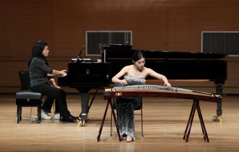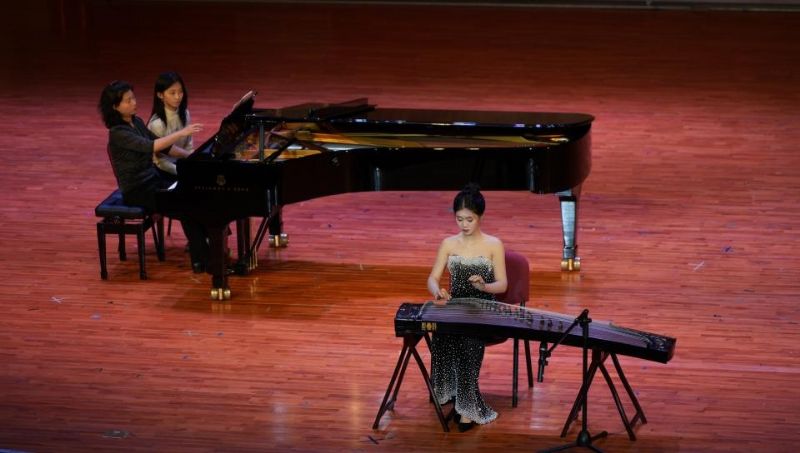 梅依燃在音乐会上演奏的曲目《箜篌引》,音符如丝,牵引遐思;随后的《四段锦》则节奏明快、层次分明,表现出传统筝乐的灵动与典雅。这一动一静的巧妙安排,让古典之美焕发出青春的活力。《定风波》在传统与现代的融合中,以悠扬清澈的琴音,传递出从容洒脱的豪情;而曲目《如是》则带领听众步入一个内省的世界,自由的音乐语汇与深刻的情感交织,整场演出令人回味无穷。