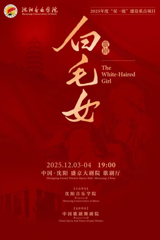 12月3日至4日,由沈阳音乐学院演出,中国歌剧舞剧院支持的民族歌剧《白毛女》将在盛京大剧院拉开帷幕;