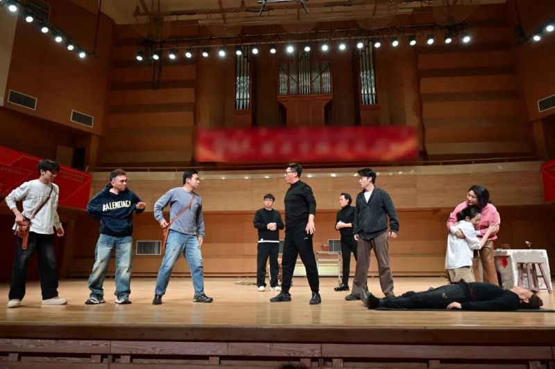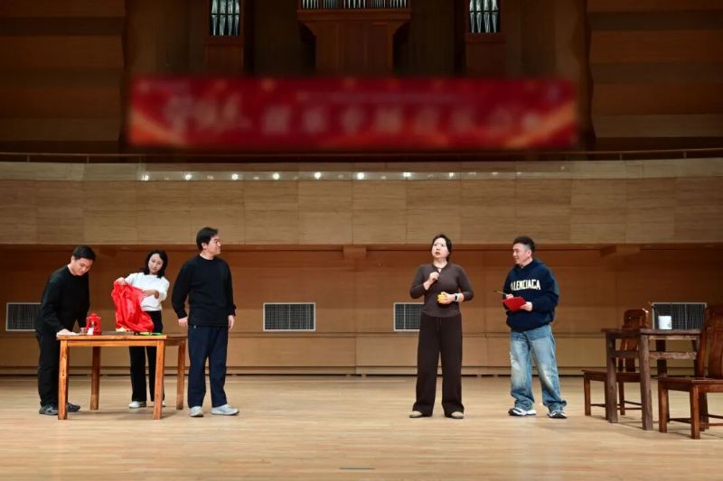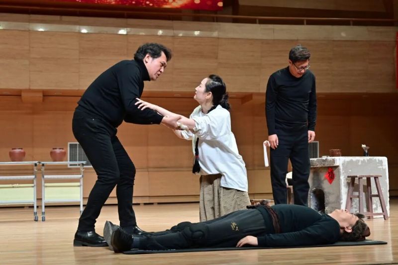 排练现场,曾任2015版民族歌剧《白毛女》导演的朱亚林导演为演员们细致讲解每一句台词的内涵、每一个动作的情感表达,帮助演员深入理解角色;在音乐呈现上,2015版《白毛女》指挥刘凤德先生带领沈阳音乐学院北方交响乐团为演员进行全剧唱段的合乐排练,确保演奏与演唱的完美融合;沈阳京剧院原院长李旗红老师为演员们进行身段及步法指导,让他们的舞台呈现更具民族韵味与特色。