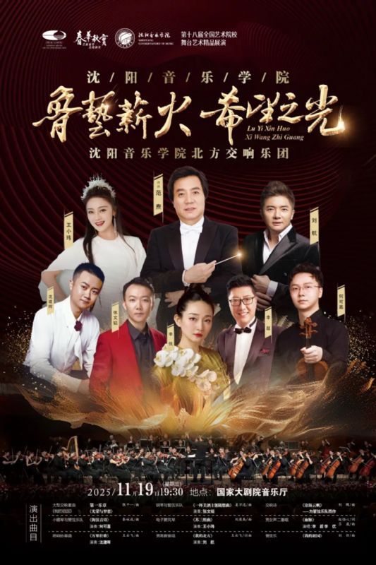 “春华秋实”展演十八载初心不改,以“艺展风华,志铸秋实”为主题,搭建起高校美育与社会美育双向赋能的优质平台。本届展演汇聚40所院校近千名师生,带来9台10场多元艺术盛宴,而沈阳音乐学院即将演出的这场音乐会,正是其中兼具历史厚度与时代温度的经典之作。