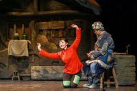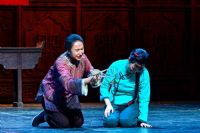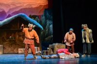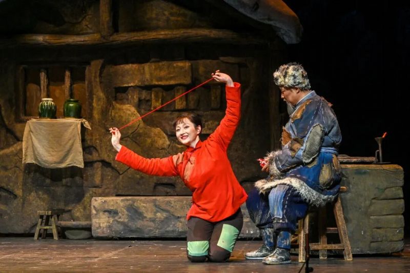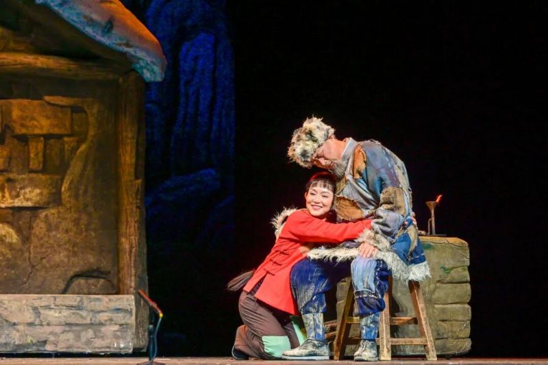 音乐教育学院教师孙欣悦和民族声乐系教授李优分别在两天的演出中以精湛的歌唱技巧和极具感染力的表演,演绎了喜儿从天真无邪到悲愤控诉,最终迎来新生的完整心路历程,将喜儿饱受磨难却坚韧不屈的形象刻画得入木三分;民族声乐系教授史玉学饰演的杨白劳则以悲怆苍劲的唱腔和细腻入微的肢体语言,生动塑造了这位受尽压迫的贫苦农民父亲,其经典唱段《扎红头绳》温情与悲怆交织,令全场观众无不为之动容。