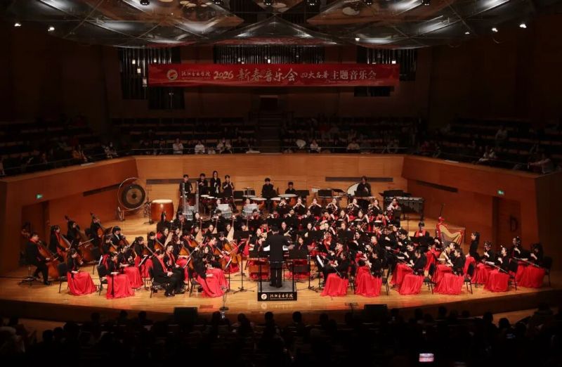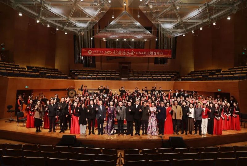 1月3日晚,沈阳音乐学院2026“四大名著”主题新春音乐会在盛京大剧院浓情上演。音乐会精选《西游记》《三国演义》《红楼梦》《水浒传》影视作品中的经典音乐,以民族交响乐的精彩演绎再现古典文学的不朽魅力,在2026年新春之际为沈城观众献上了一份充满时代情怀且意蕴深长的文化贺礼。省市相关单位和机构主要领导,沈阳音乐学院领导班子成员与现场千余名观众欢聚一堂,共同领略了这场融合文学与音乐之美的艺术盛宴。