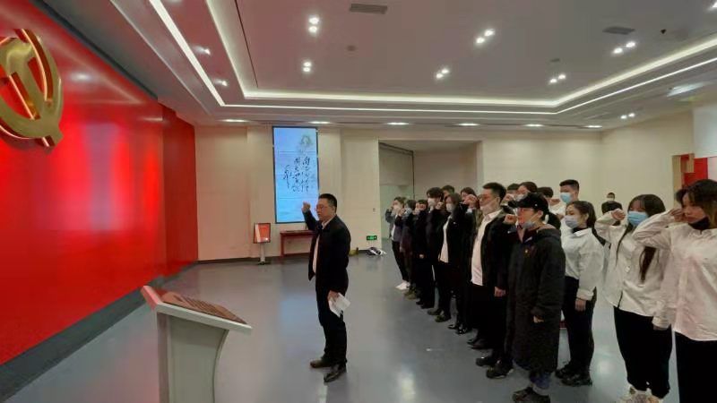 在雷锋纪念馆内民族器乐教育系党支部七名刚刚转正的学生党员与其他党员一起重温了入党誓词。
