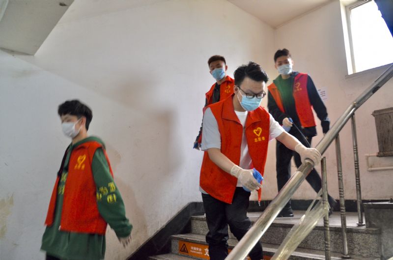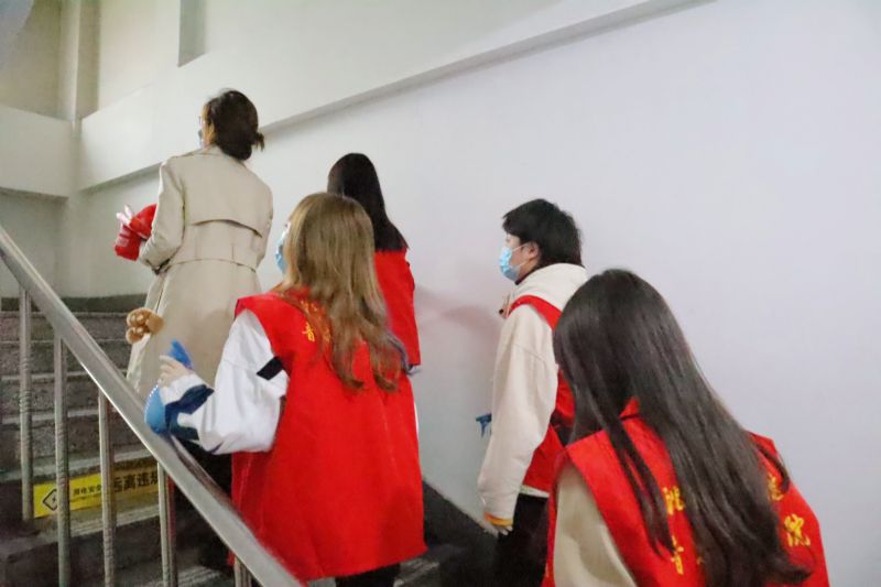 在李静霞的带领下,分两组分别进入音乐教育学院男、女学生公寓,抹布、扫把、拖布、喷雾器齐上阵,不同区域使用不同的工具,对各楼层的楼梯、走廊、寝室内部、洗漱间、卫生间等公共区域进行系统的消杀,每位参与的学生代表各自认真清洗、消毒,确保消杀工作不留死角,同时做好消毒记录,保证消杀工作完整有序。