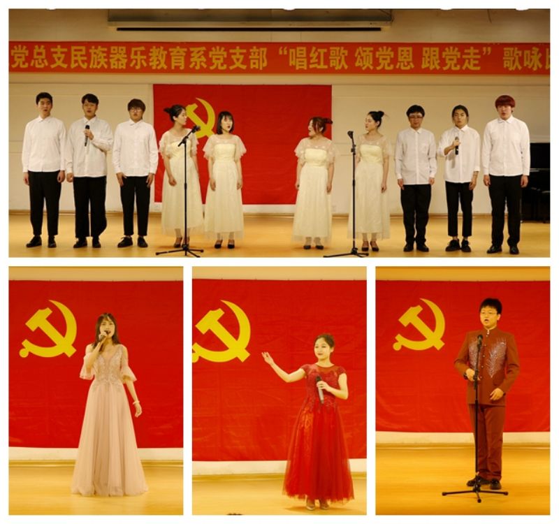 民族器乐教育系党支部用新颖的学习形式,让广大党员师生在歌声中重温老一辈革命家艰苦奋斗的精神,感悟改革开放新时代的拼搏进取精神,在红色经典和具有鲜明时代感的作品中接受教育,重温党史,锤炼党性,增进对党的热爱,将红色基因、革命精神薪火相传。
