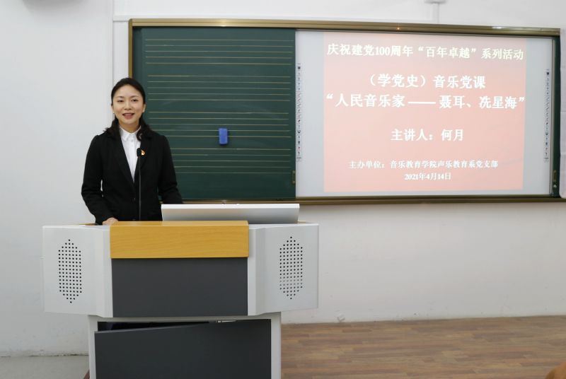 为深入学习贯彻习近平总书记在党史学习教育动员大会上的重要讲话精神,进一步落实沈阳音乐学院党委及音乐教育学院党总支,对全员开展党史学习教育的动员与部署。4月14日,音乐教育学院副院长何月在长青校区第一教学楼0102教室,为声乐教育系全体教师、学生党员、入党积极分子及学生代表上了一堂题为《人民音乐家——“聂耳、冼星海”》的音乐党课。会议由声乐教育系党支部书记李超主持。