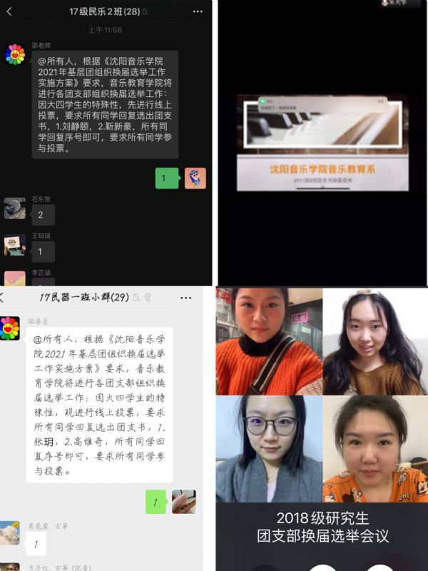 4月3日—15日,音乐教育学院严格按照组织程序,通过线上、线下相结合的方式完成了所辖81个团支部换届选举。