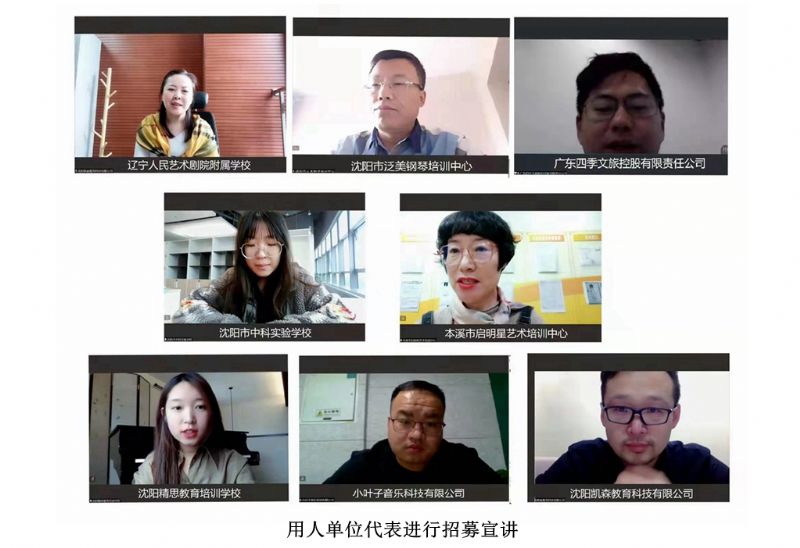 共有53家用人单位参加此次供需双选会。辽宁人民艺术剧院附属学校、沈阳市泛美钢琴培训中心、广东四季文旅控股有限责任公司、沈阳市中科实验学校、本溪市启明星艺术培训中心、沈阳精思教育培训学校、小叶子音乐科技有限公司、沈阳凯森教育科技有限公司等8家用人单位作为代表进行了招聘宣讲。