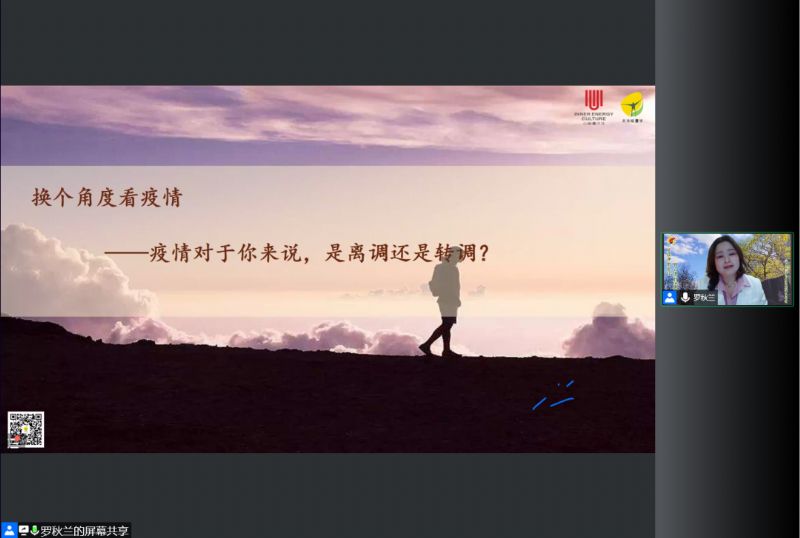 罗秋兰老师首先从音乐的角度切入,分析当前疫情带给我们的压力影响,以及对于压力所产生的应激反应,面对情绪应对方式,如何掌握主动权,“调校”人生目标,释放情绪;其次与师生们探讨当前疫情对学习、生活和心理健康的影响,重点指导如何从情绪管理、建立连接、规律生活等方面提升心理抗疫能力。最后通过翔实的案例告诉我们,在逆境中遇到困难时,依然要保持乐观的心态,积极面对,要有百折不挠的勇气和信心。整场讲座罗秋兰老师娓娓道来,给人如沐晨风之感,很多温暖有力的话语给同学们留下深刻的印象。