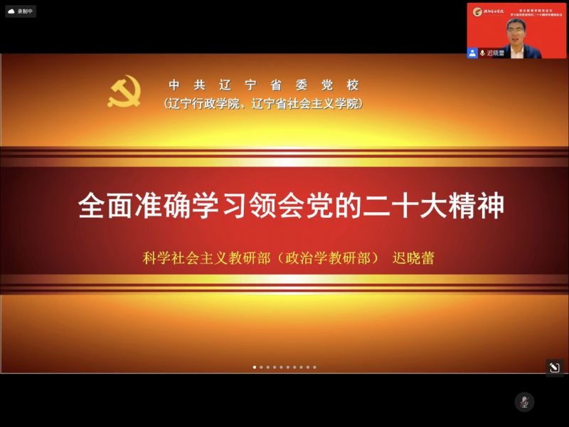 迟晓蕾副教授以“全面准确学习领会党的二十大精神”为主题,引经据典,详尽阐述了党的二十大召开的重要意义。随后他紧密围绕党的二十大报告的主要内容、贯彻落实好党的二十大作出的重要决策部署两方面内容对党的二十大精神进行系统宣讲和深入阐释,系统梳理了二十大报告中的新观点、新论断和新部署。进一步加深了广大师生对党的二十大精神丰富内涵和精髓要义的深刻理解。