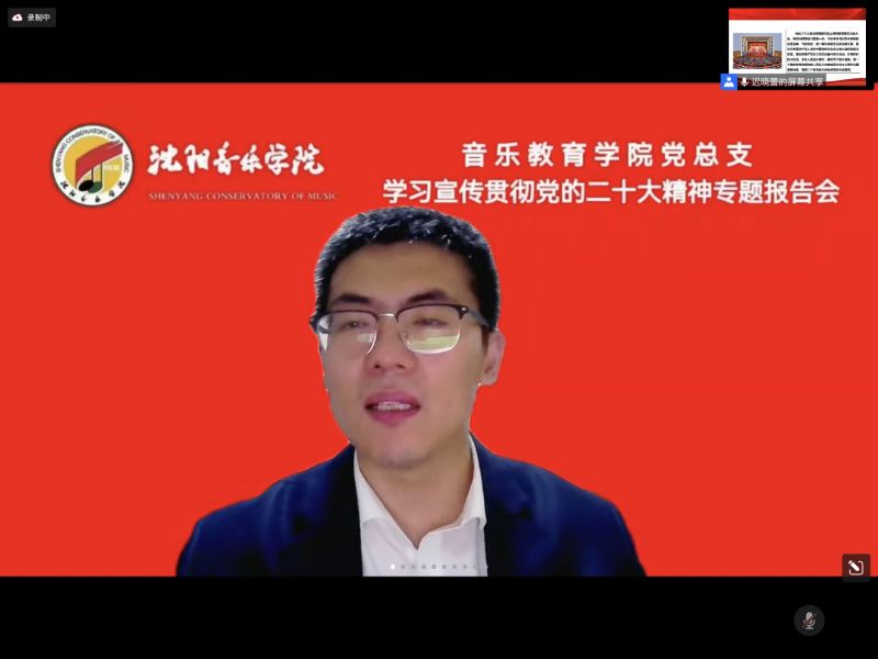 为深入学习宣传贯彻党的二十大精神,把广大师生的思想和行动统一到党的二十大精神上来,把力量凝聚到实现党的二十大确定的目标任务上来。12月16日,音乐教育学院党总支邀请辽宁省委党校迟晓蕾副教授为我院师生作党的二十大精神专题辅导报告。音乐教育学院领导班子成员,各系、各办公室主任、书记、副主任、全体党员和学生代表参加报告会。