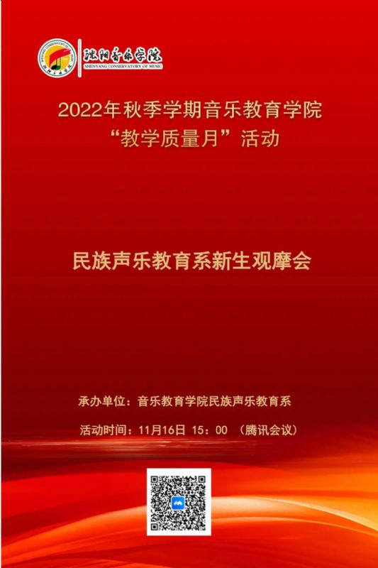 2022年11月16日13:00时,民族声乐教育系举办了2022级新生观摩会,全系学生进行线上观摩学习。
