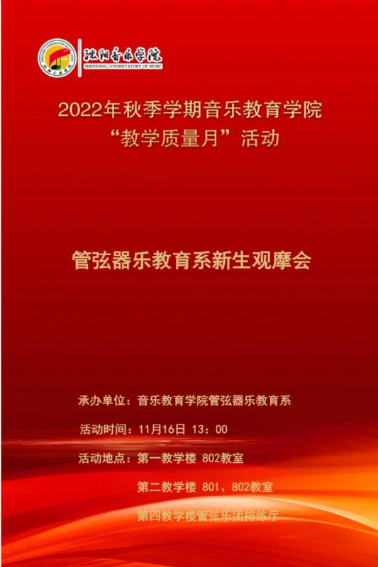 2022年11月16日管弦器乐教育系举办了2022级新生观摩会。全体新生和各专业主教教师参加了本次观摩会。
