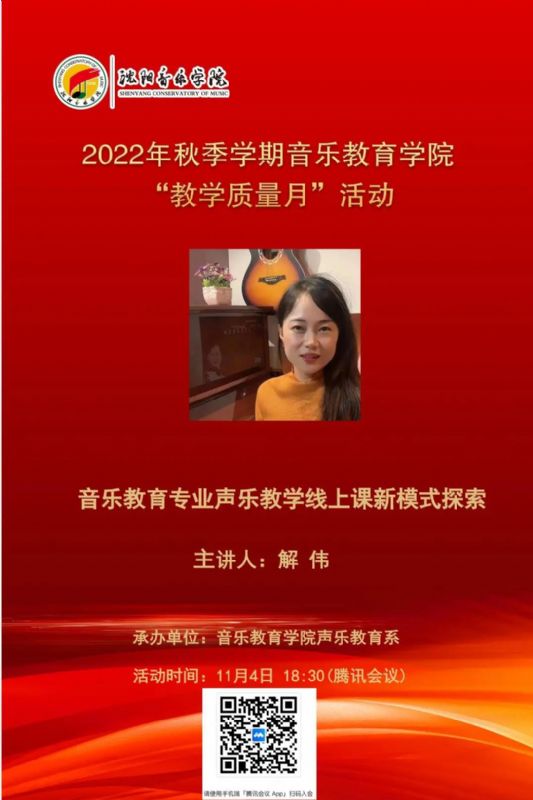 2022年11月4日,声乐教育系举办了由解伟老师主讲的公开课《音乐教育专业声乐教学线上课新模式探索》。