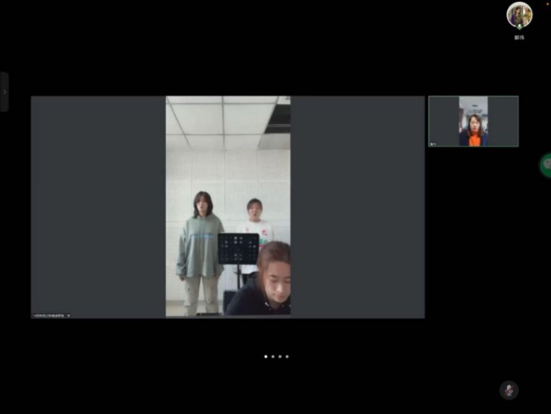 首先,声乐教育系李明月副主任介绍了本次公开课的目的:一是分享解伟老师的教学方法,二是希望能借此帮助学生们解决线上授课时遇到的问题。随后,解伟老师以小组课的授课形式开始了本次公开课。在课堂中,解伟老师讲解了声乐演唱发声的五个步骤,接着同小组的学生互相配合演示,让大家有了更直观的体验。解老师以比喻和想像的形式将学生带入情境,生动的讲解使学生更好的理解并掌握声乐演唱的技巧。参加公开课的同学们纷纷表达了自己对新型线上教学的认识,也能领悟到老师探索线上教学新模式的意义。