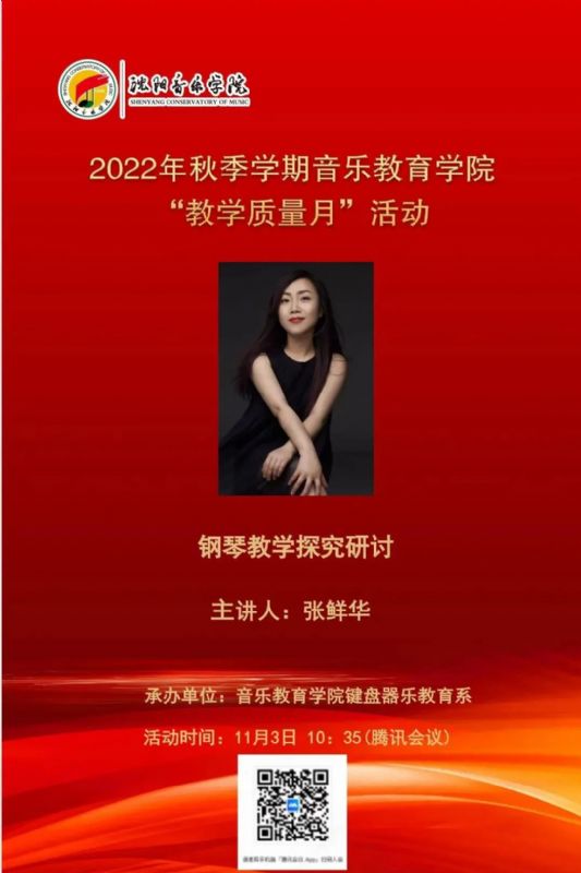 2022年11月3日10时,键盘器乐教育系以腾讯会议形式举办了一场《钢琴教学探究研讨》公开课,主讲人为键盘器乐教育系张鲜华老师,演奏者系键盘器乐教育系学生姜雨轩。
