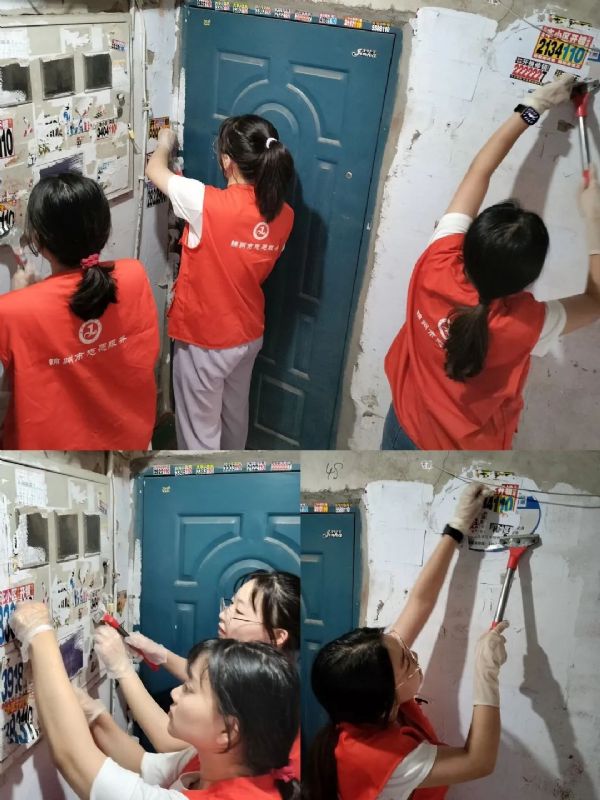 实践团成员对居民楼里的小广告进行清除;在各个居民楼门口公告栏内粘贴有关防燃气安全隐患的告示;调查科普燃气知识并走访各户,了解如何使用消防栓;对马路周围电线杆柱刷大白,向居民打电话调查疫苗接种情况。