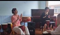 学校负责人为实践团成员介绍了学校的发展历史、课程设置以及学生的基本状况。课堂上,实践团成员教孩子们学会了打非洲鼓,还教会了孩子们《送别》《洋娃娃与小熊跳舞》等多首歌曲,通过举例、示范等多种方式帮助他们理解音乐,借此培养他们对音乐的热爱,让他们找到生活中的另一种欢乐,稚嫩的歌声中饱含对未来的期望。活动最后,实践团成员为小朋友们送上了精心准备的礼物。