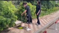 8月12日,实践团队走进辽宁省海城市百汇香山小区开展卫生服务活动。
