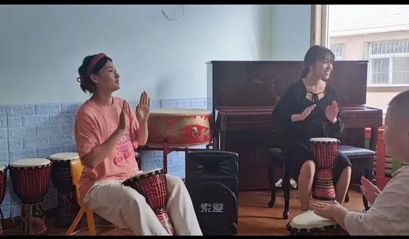 学校负责人为实践团成员介绍了学校的发展历史、课程设置以及学生的基本状况。课堂上,实践团成员教孩子们学会了打非洲鼓,还教会了孩子们《送别》《洋娃娃与小熊跳舞》等多首歌曲,通过举例、示范等多种方式帮助他们理解音乐,借此培养他们对音乐的热爱,让他们找到生活中的另一种欢乐,稚嫩的歌声中饱含对未来的期望。活动最后,实践团成员为小朋友们送上了精心准备的礼物。