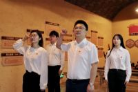 二号展厅——党员政治生活体验中心。此馆以“信仰”为主题,集学习、教育、展示、互动、服务等功能于一体。通过场景再现、时光隧道等方式,突出体验功能、深化信仰力量,让我们仿佛身临其境。在这里,实践团全体成员回顾党史,重温入党誓词。
