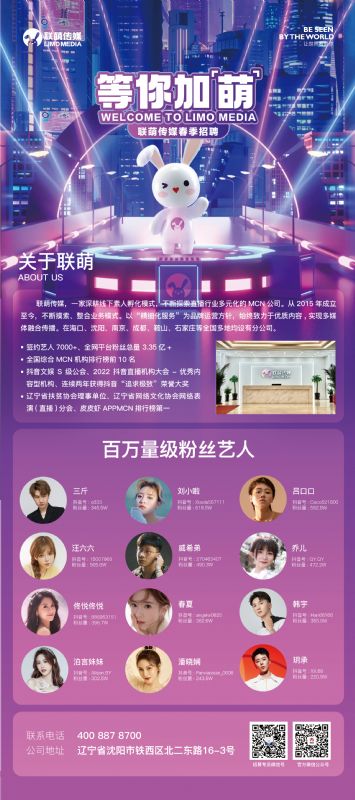 辽宁联萌文化传媒有限公司始建于2015年底,位于东三省核心城市沈阳,先后在海口、南京、重庆、成都、厦门、鞍山、石家庄等地设立分公司。业务范围涵盖短视频商业化、文娱直播、艺人经纪、网络教学、网络电商等领域,是一家专注孵化素人的综合性MCN公司,也是全国首家基于线下服务艺人的MCN公司。目前在沈阳拥有3家分公司,办公面积3万余平。2022年12月,我院与辽宁联萌文化传媒有限公司签订建立联合培养基地合作协议,并输送一批优秀毕业生。本次交流,该公司希望在主播、直播运营、经纪人、网络教学主播、电商主播、拍摄与剪辑、直播讲师、视频运营、化妆师等方面能继续为毕业生搭建就业平台,提供优质服务。