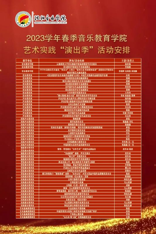 为落实学院《开展2022-2023学年度第二学期集中艺术实践的通知》,提高教育教学质量,强化教学实践和艺术实践环节,音乐教育学院于2023年4月-5月开展艺术实践“演出季”系列活动。