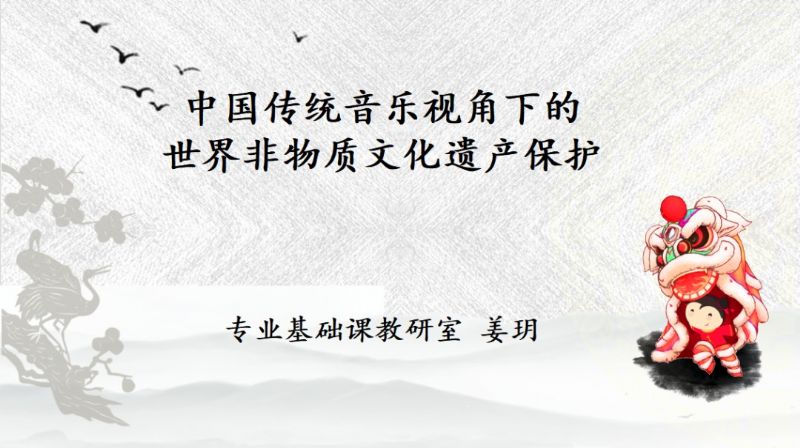 姜玥老师首先对截至2020年12月,中国列入联合国教科文组织的42项非物质文化遗产进行了概述,并通过14个表演艺术类别精彩的详细介绍与赏析,带领全体教师深入了解了非遗文化的内涵和价值。在互动交流环节中,全体老师积极探讨非物质文化遗产保护的现状和问题,并提出了一些有益的思考和建议。教师们积极地进行了思想交流和观点碰撞,通过充分的互动和讨论,达成了共识并相互促进,共同提高专业水平。