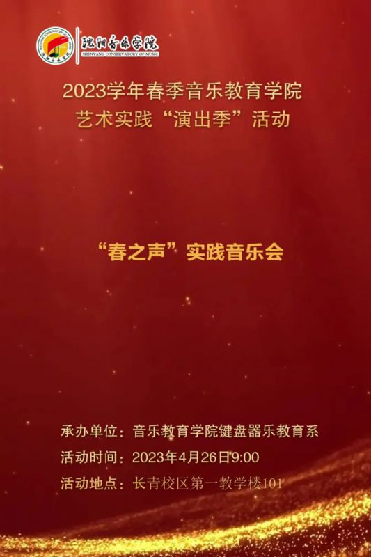 为激发学生学习兴趣和热情,同时提供更多的实践交流平台,展示学生们良好的专业功底和艺术素养。音乐教育学院键盘器乐教育系于2023年4月26日9时在长青校区第一教学楼101教室举办了音乐教育学院演出季之“春之声”实践音乐会活动。